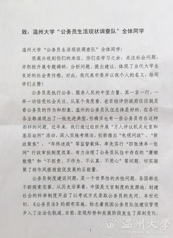 麻将胡了试玩(中国)官方网站 学生用近半年的时间对我市"公务员生活现状"做了深入的调研,并就此事给省委常委、市委书记陈一新写了一封信。
