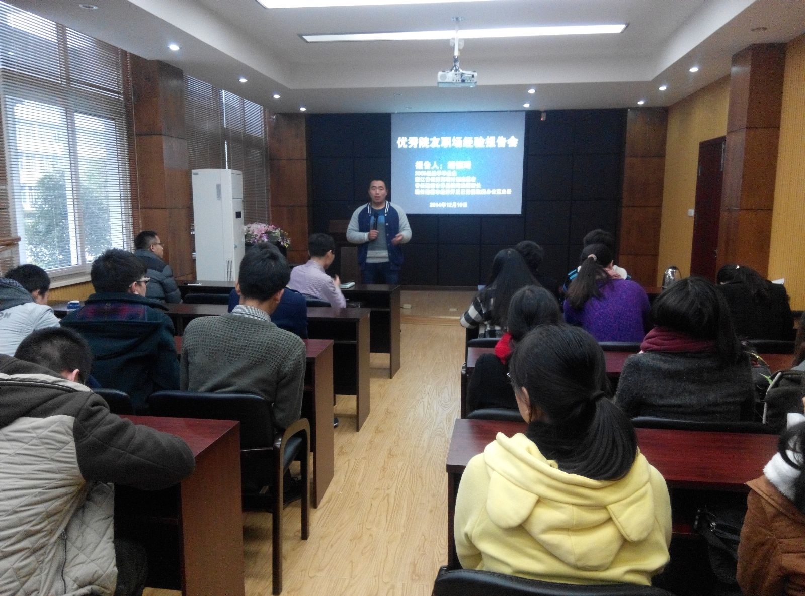 月10日下午,院学生科、团委举办的优秀院友职场经验报告会在一楼报告厅如期举行,麻将胡了试玩 党总支副书记严玲红、学生科孙德升和白昌科老师以及毕业班70余名学生代表参加报告会。