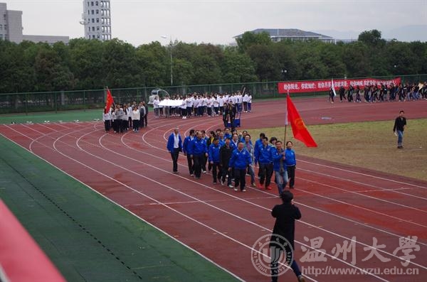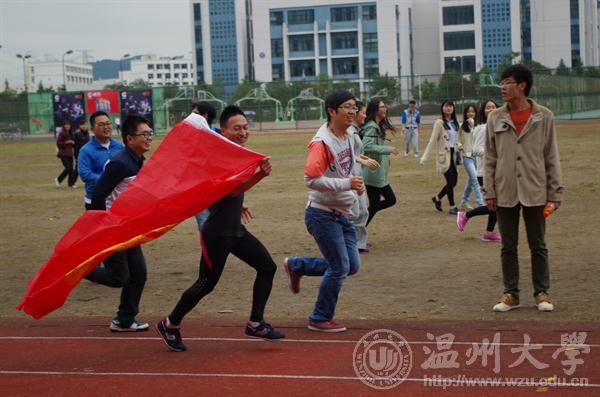 金秋十月硕果累累,师生健身意气风发。党的十八届四中全会"依法治国"蓝图绘就,"法治中国梦"让人憧憬更让法政师生倍感振奋。为凝聚师生情谊,促进师生共乐,实现法治梦强身梦,作为温州大学第四届师生节法政麻将胡了试玩 的特色项目之一,11月9日法政麻将胡了试玩 在南校田径场隆重举行第二届师生运动会。院领导钭晓东、王柏民、严玲红、王宗正以及麻将胡了试玩 各专业系室全体教师、本科生研究生全院同学,一同出席开闭幕式并全程参与上下午全部师生运动会项目。