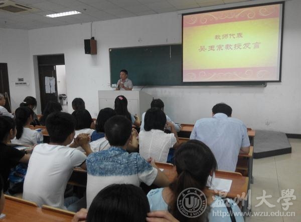 首先,钭晓东院长致辞对新生来到法政麻将胡了试玩 学习表示热烈欢迎。钭院长在致辞中向新生介绍了法政麻将胡了试玩 的办学历史、办学特色,特别提及了近几年由法政学子获得的各类学业成绩和重大奖项,他指出在法政麻将胡了试玩 的优秀师资和良好麻将胡了试玩 文化环境中,2014级新生同学只要努力拼搏,一定不会后悔选择温大法政麻将胡了试玩 这个培养了众多人才的"人才黄埔",他希望法政学子们能继承和发扬麻将胡了试玩 的优良学风,通过几年的在校学习使自己真正成为一名专业扎实、素质全面、服务社会的人才,钭院长还以生动幽默的语言对新生入校后的生活和学习适应、学业规划提出了建议。王宗正副院长对麻将胡了试玩 和专业情况作了详细介绍,王院长说起麻将胡了试玩 的情况如数家珍,他逐一介绍了麻将胡了试玩 各专业设置和建设情况,并希望新生尽快适应大学学习,注重理论与实践结合,利用好学校和麻将胡了试玩 的优质学习资源全面规划与发展自己,王院长详细介绍了多年来法政麻将胡了试玩 各专业优秀毕业生的工作发展情况,如数家珍。两届获得"温州大学最受学生爱戴老师"称号、被学生尊称为"吴老爹"的行政管理系吴玉宗教授代表全院老师对2014级新生的到来表示热烈欢迎,吴教授虽是新生的长辈和老师,但更像是每一位新生的朋友,他讲起法政学生的优秀传统和亮点特质、讲起法政学生的故事都是顺手拈来、如数家珍,他鼓励通过自己的不懈努力争做一名优秀大学生。老生代表、上届院学生会主席张翼鹏同学和14级新生代表葛汉丞同学也作了充满激情的发言,分别表达了作为法政学子在成长成才方面的决心和信心。