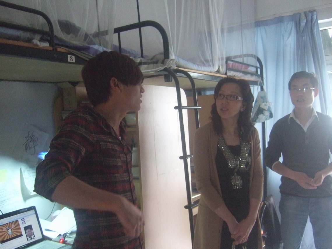 党总支副书记严玲红和辅导员孙德升以及部分学生干部一起走访了法政学生寝室。走访过程中,严书记和同学们进行了亲切轻松的交谈,一句句关心的话语,一声声真诚的问候,使宿舍里充满了温情与笑语。看到排列整齐的书籍、干净的桌面、整洁的床铺、积极向上的舍内标语以及独具创意的宿舍装饰,各位老师对同学们的良好生活习惯和寝室文化建设给以了充分肯定和鼓励。在轻松的气氛中,麻将胡了试玩
