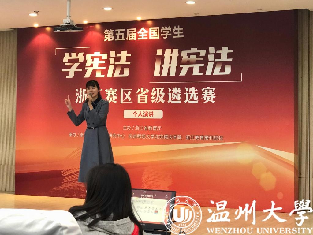 演讲比赛设置小学组、初中组、高中组和高校组四个组别。前期,来自麻将胡了试玩 的齐倩凌同学经过层层选拔,作为温州大学代表前往杭州参加省级遴选赛。比赛现场,面对各路如云高手,齐倩凌同学紧密结合社会热点、案例事迹等,谈自身经历、感受和认识,演讲内容丰富,感情饱满,准确诠释了公民恪守宪法原则、弘扬宪法精神、履行宪法使命的重要意义,表现出良好的心态和出色的综合素质。经过主题演讲和命题演讲两轮紧张比拼,齐倩凌同学最终脱颖而出,斩获高校组第一名,并将代表浙江出战全国总决赛,期待齐倩凌同学能在全国总决赛中取得优异成绩!