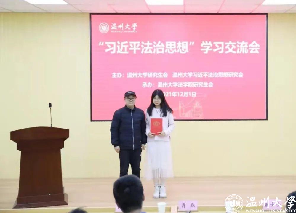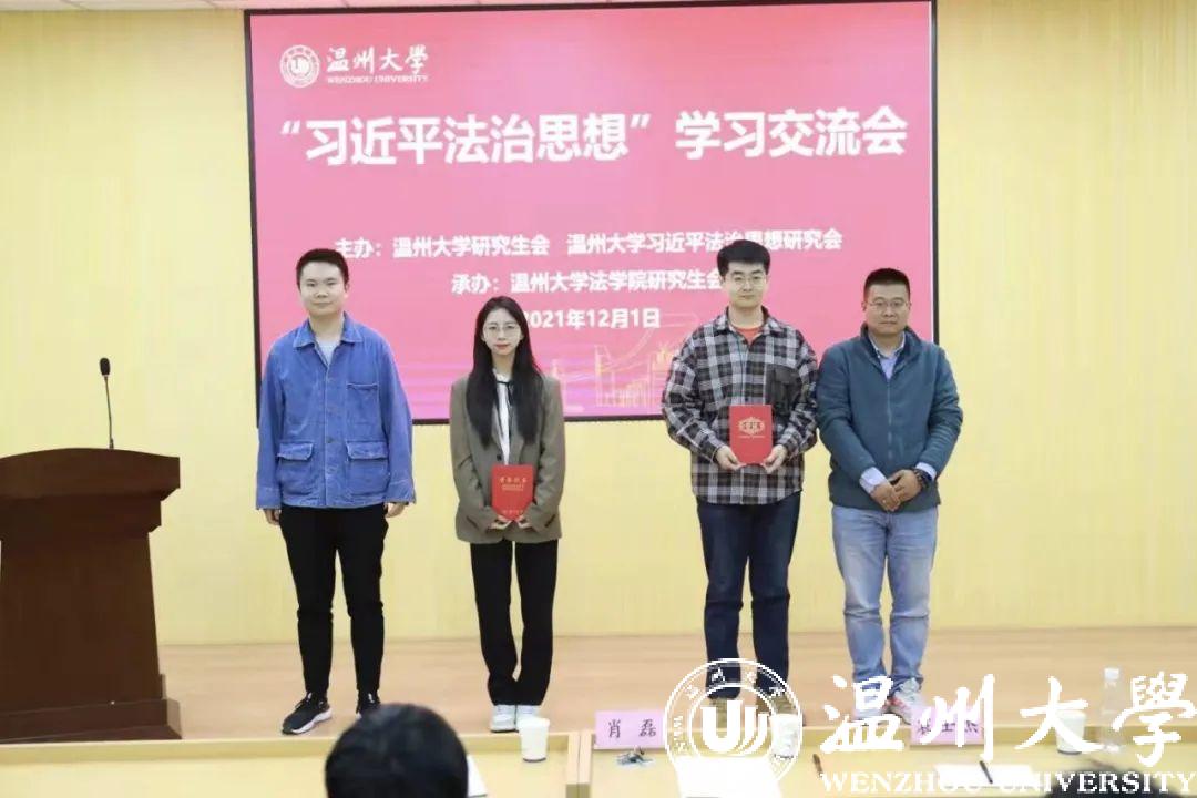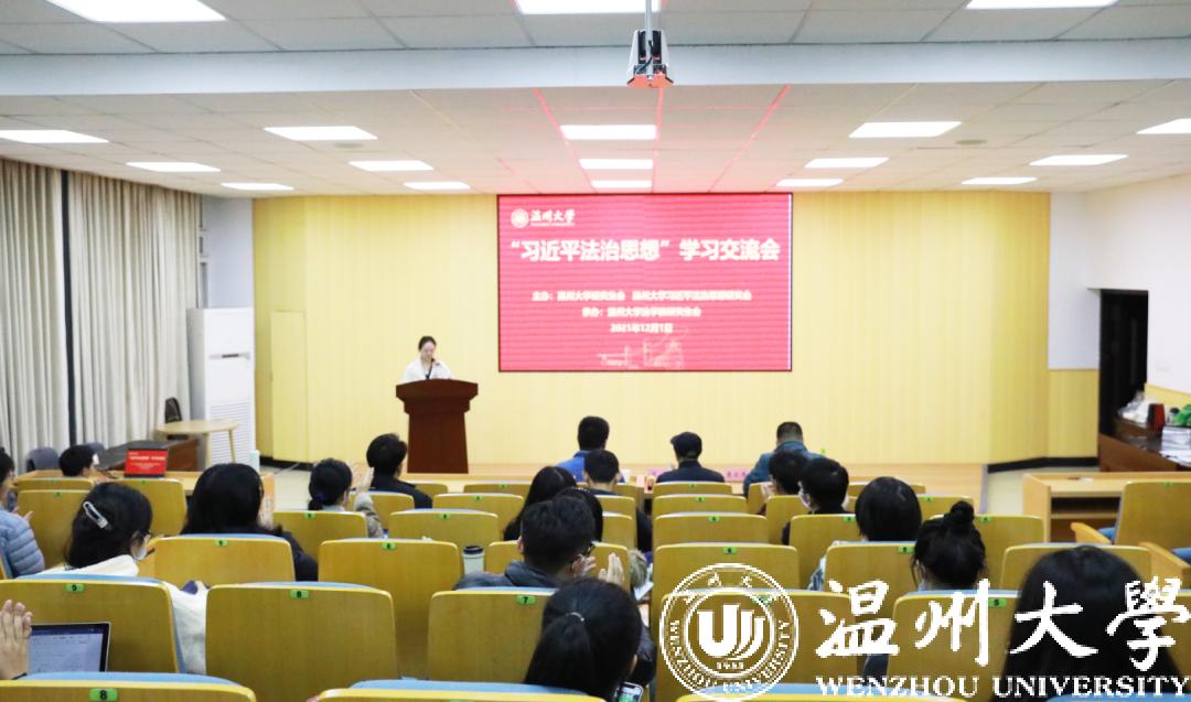 2021年12月1日晚,温州大学习近平法治思想学习交流会在北校区麻将胡了试玩 举办。活动由温州大学研究生会和温州大学习近平法治思想研究会联合举办、麻将胡了试玩 研究生会承办。麻将胡了试玩 肖磊、袁士杰、黄点点三位老师担任评委,各麻将胡了试玩 研究生到现场参与学习交流。