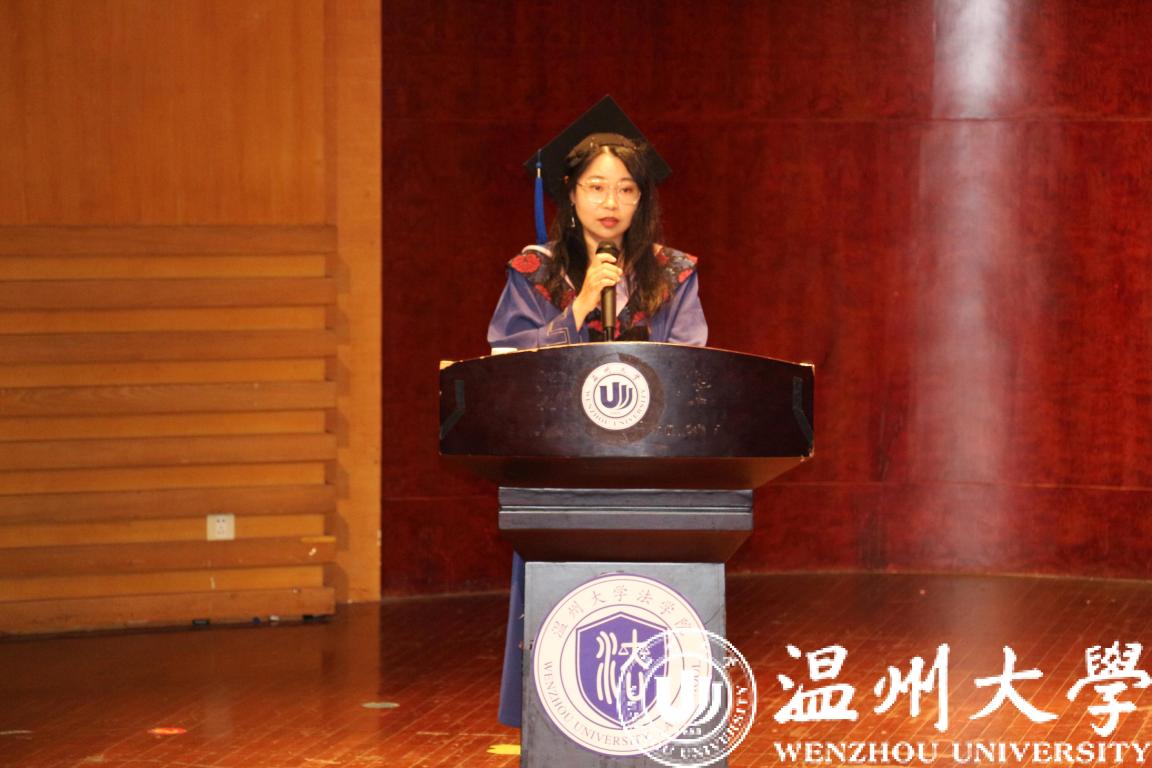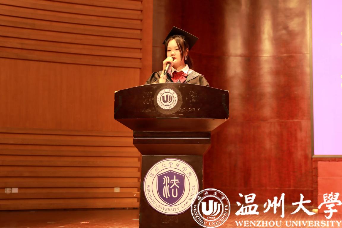 “三年间,我们共同见证了民法典的颁布施行,见证了刑事责任年龄的下调,见证了个人信息保护法的实施适用,社会主义法治化道路建设的每一步都坚定又从容,我们既是过去的见证者,也是未来的参与者。”研究生毕业生代表闫静分享了自己三年来的所学所思所感,祝愿所有毕业生前途有光,向阳而生,逆风而行。“今天的毕业典礼对于我们中的大多数人来说,可能是学生时代的最后回忆,未来无论去往何方,我相信我们每一个人都将在自己的事业中闪闪发光,与平庸相斥,与理想相拥。”