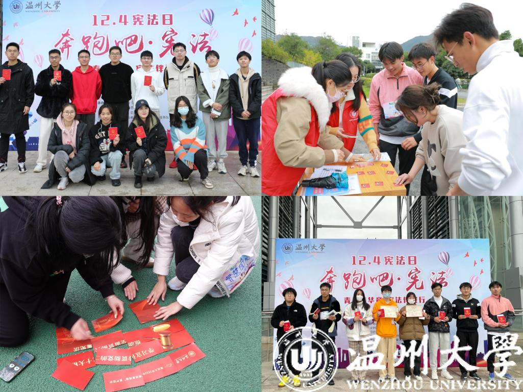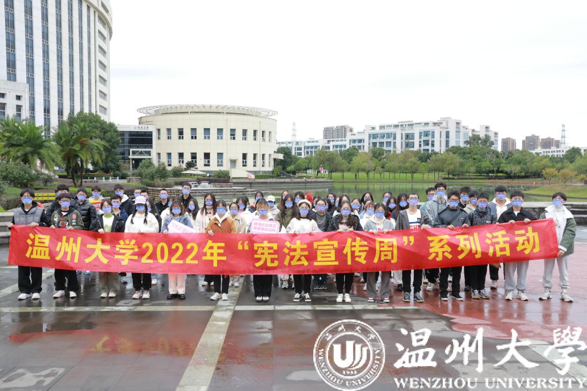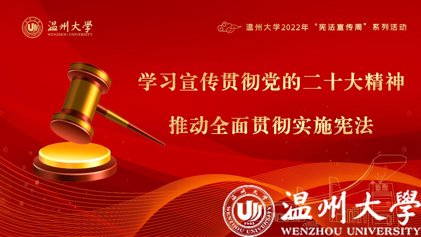 2022年12月4日是第九个国家宪法日,今年也是我国现行宪法公布施行四十周年。为认真学习习近平法治思想,深入贯彻落实党的二十大精神,进一步在青年大学生中普及宪法知识、弘扬宪法精神、树立宪法权威,温州大学组织开展以“学习宣传贯彻党的二十大精神,推动全面贯彻实施宪法”为主题的宪法宣传周系列活动。从干货满满的宣讲视频到思维碰撞的宪法知识竞赛,从社区、校园普法到国旗下的庄严宣誓,内容丰富、形式多元,为师生带来丰富的宪法宣传活动体验。