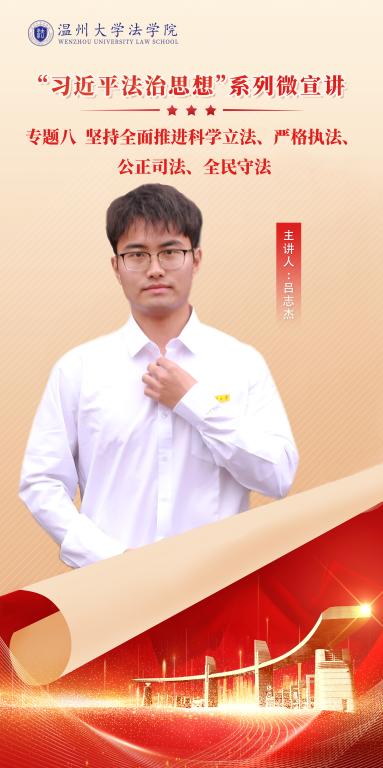 温州大学习近平法治思想研究会推出习近平法治思想系列微宣讲,以视频宣讲的形式解读“十一个坚持”,增进广大青年对习近平法治思想核心要义的理解,引领青年学子在实践中贯彻落实“十一个坚持”,成为社会主义法治的忠实崇尚者、自觉遵守者和坚定捍卫者。