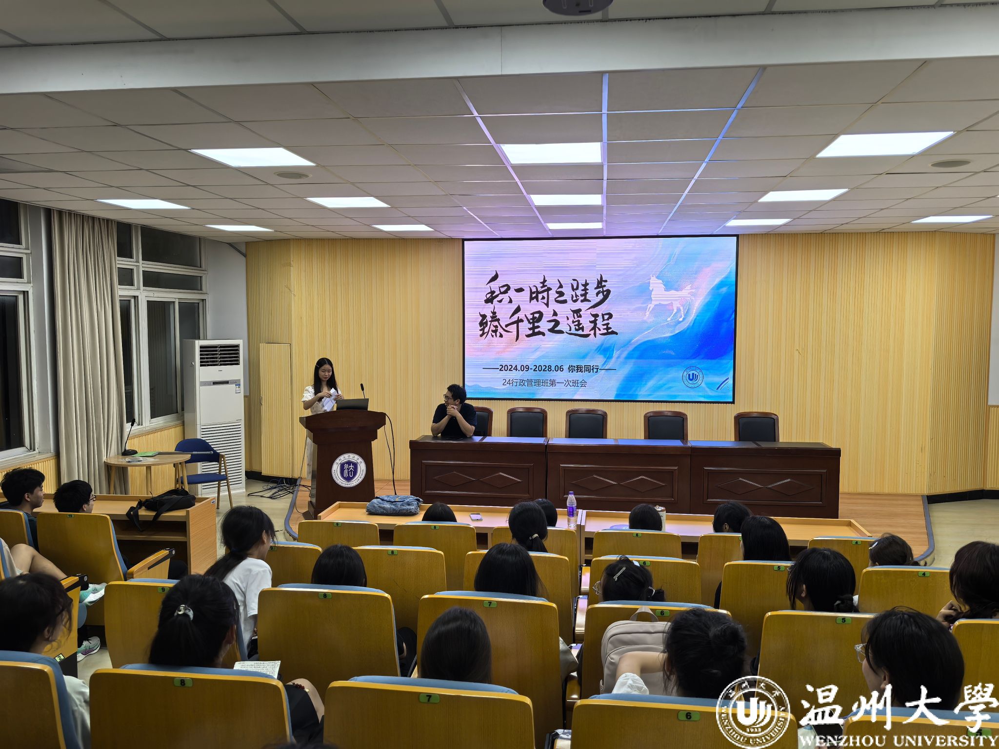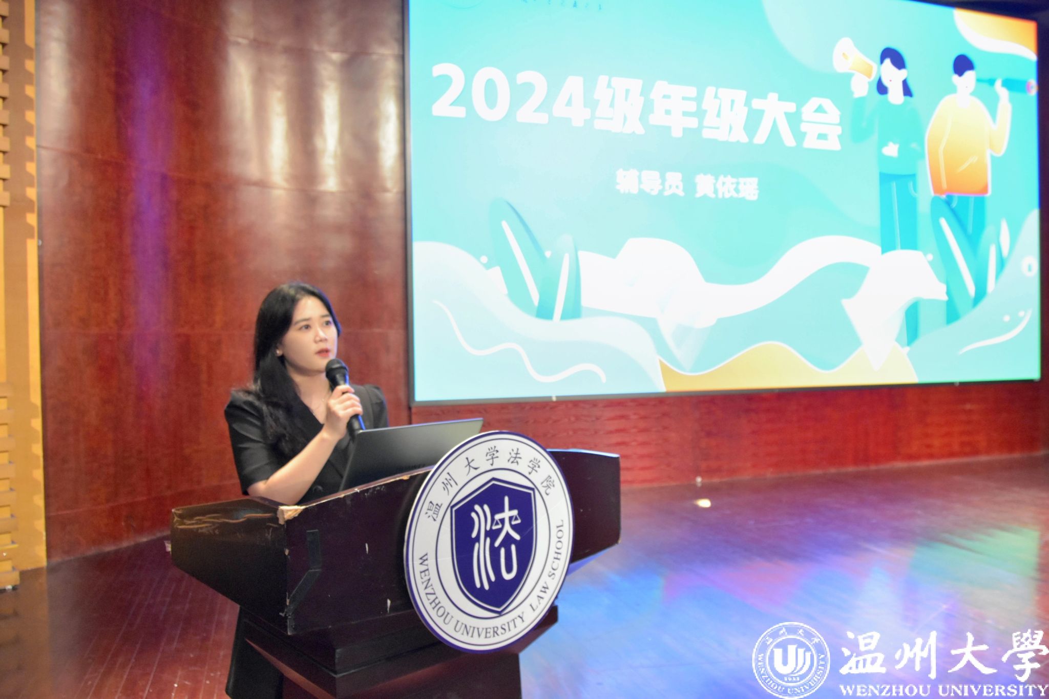 2024级年级大会由辅导员黄依瑶老师主持,全体2024级本科新生参加会议。