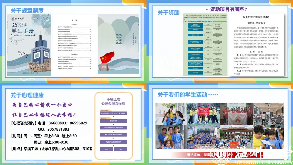黄老师以“跨越山海 聚梦温大”为主题切入,对新同学们的到来表示热烈的欢迎与殷切的期待,向同学们介绍了新学期与新生相关的重点工作以及麻将胡了试玩 科室设置、辅导员责任分工等。鼓励大家端正心态、调整情绪,调整生物钟、逐渐步入正轨,结合实际、制定学习计划,积极参加体育运动。通过“悟长、悟志、悟才、悟行”,看到自己的成长、找到自己的目标、发挥自己的技能、走好新学期之路。