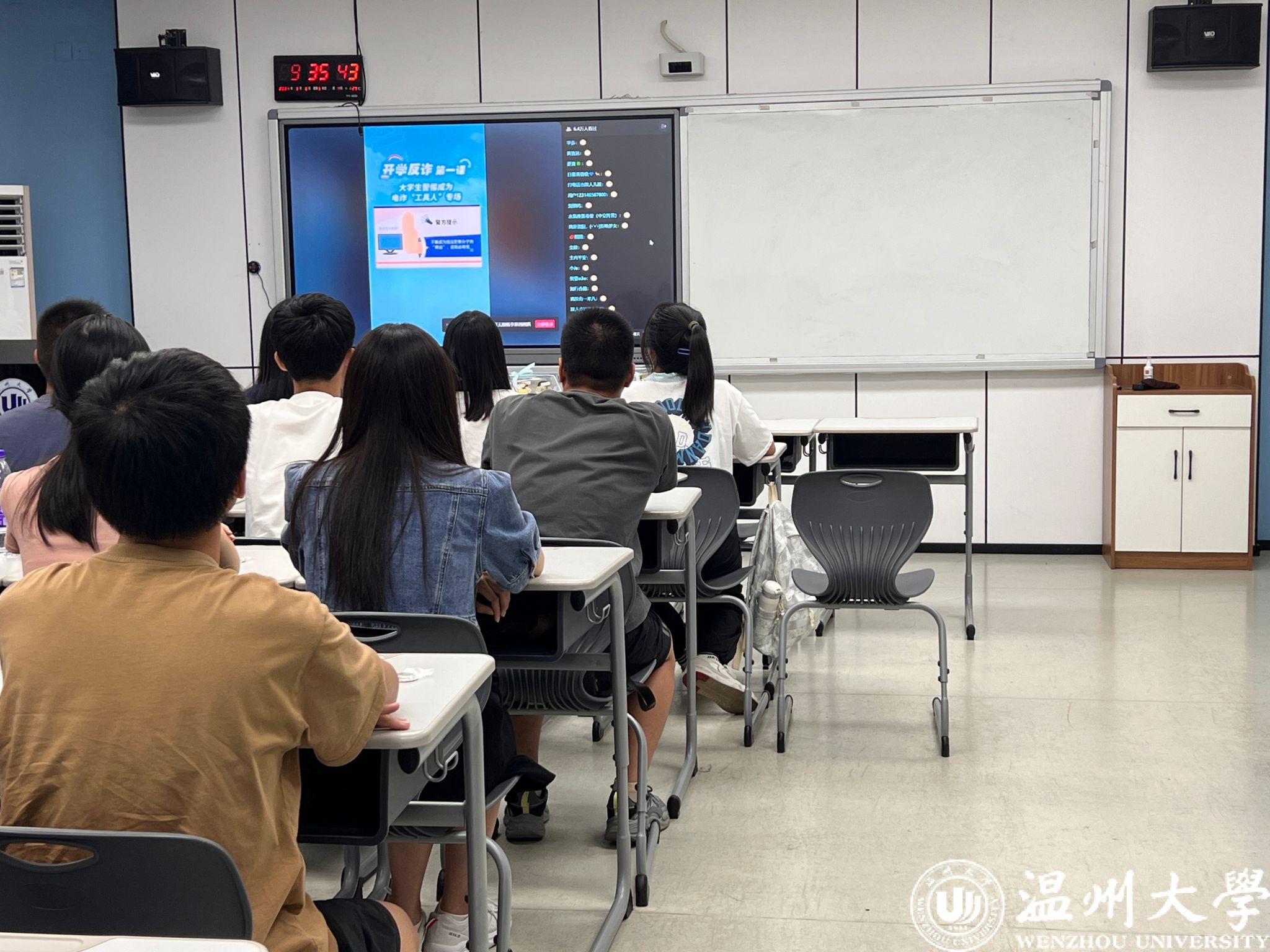在安全教育环节,黄老师以近两年发生在学校的真实案例警示大家,科普了防诈反诈、交通安全、消防安全、食品安全、公寓安全等方面的相关知识。