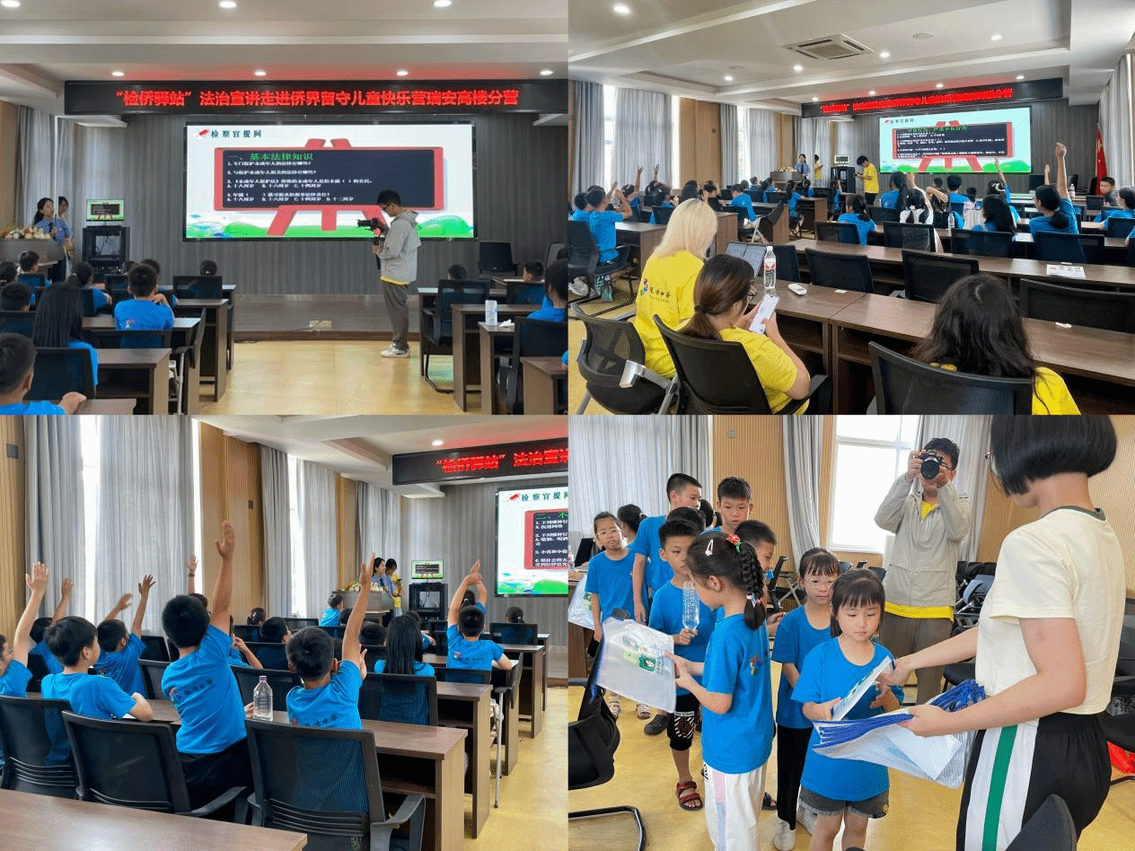 为进一步提高广大侨界留守儿童的法律意识和法治观念,营造健康安全的青少年成长环境,7月22日下午,瑞安市侨联联合市人民检察院开展“检侨驿站”法治宣讲走进高楼分营活动。