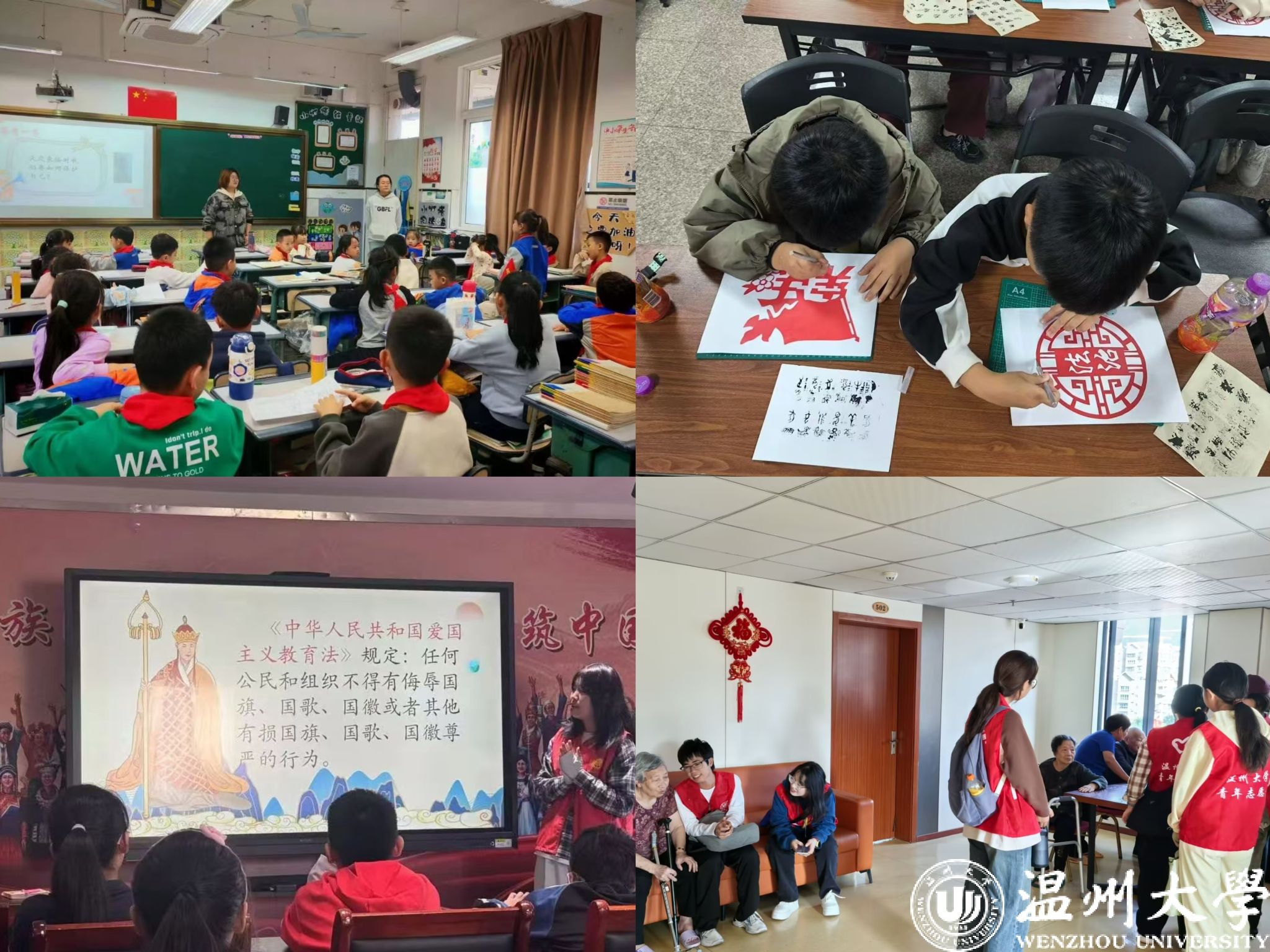 温州大学青少年法治教育协会、法学协会联合野逸书画协会、手艺协会将非遗剪纸、手工拼图、模拟法庭等创新融入普法课堂,推进优质普法课堂走进中小学和街道社区,在郭溪第三小学、河头村文化礼堂、瞿溪民族团结服务站、康居乐养老中心等地鲜活“上演”、精彩“开讲”,近期已为近12个服务单位累计开展近15次普法宣讲活动,受益人群近千人次。