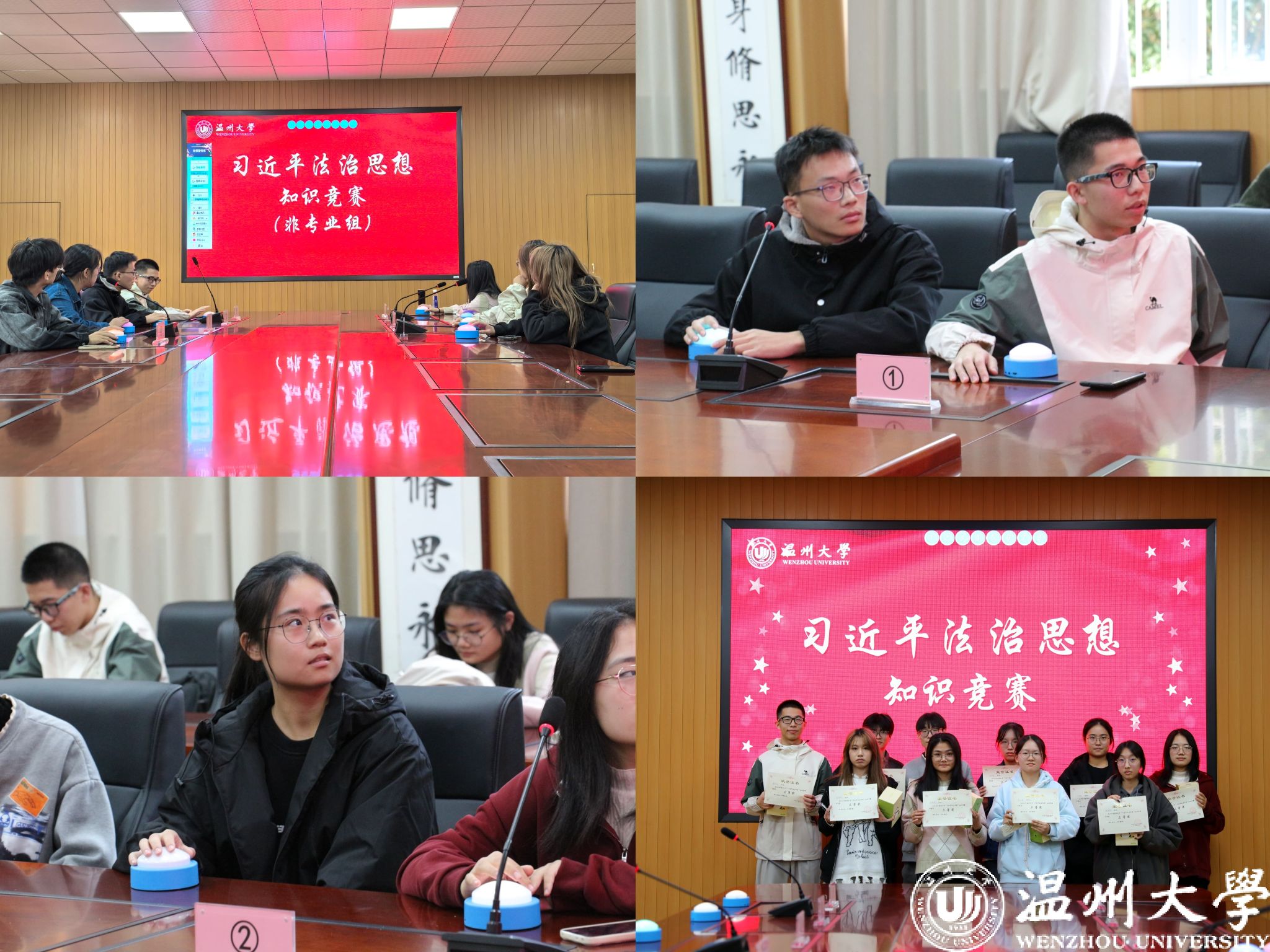 “习近平法治思想首次提出是在2020年11月16日至17日召开的中央全面依法治国工作会议!”“恭喜2号同学抢答成功!”……温州大学习近平法治思想知识竞赛重点围绕宪法知识、习近平法治思想、党的二十届三中全会相关内容,设有判断题、单选题、多选题和逻辑题。来自不同麻将胡了试玩 的16名选手在决赛中展开激烈角逐,现场紧张热烈、妙趣横生。知识竞赛充分检验了大学生对习近平法治思想、宪法知识的掌握程度,将法治学习的知识性与趣味性融为一体。