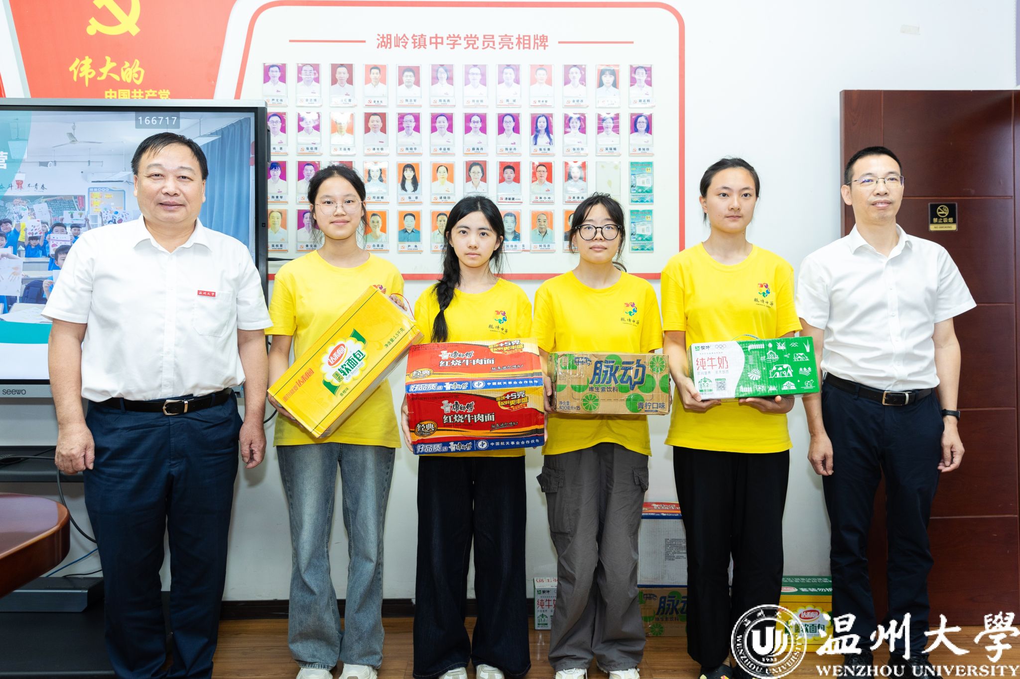 与会领导为快乐营志愿者发放慰问物资,勉励大家在实践中增长才干、奉献青春,并与志愿者们合影留念,共同记录这一温馨时刻。