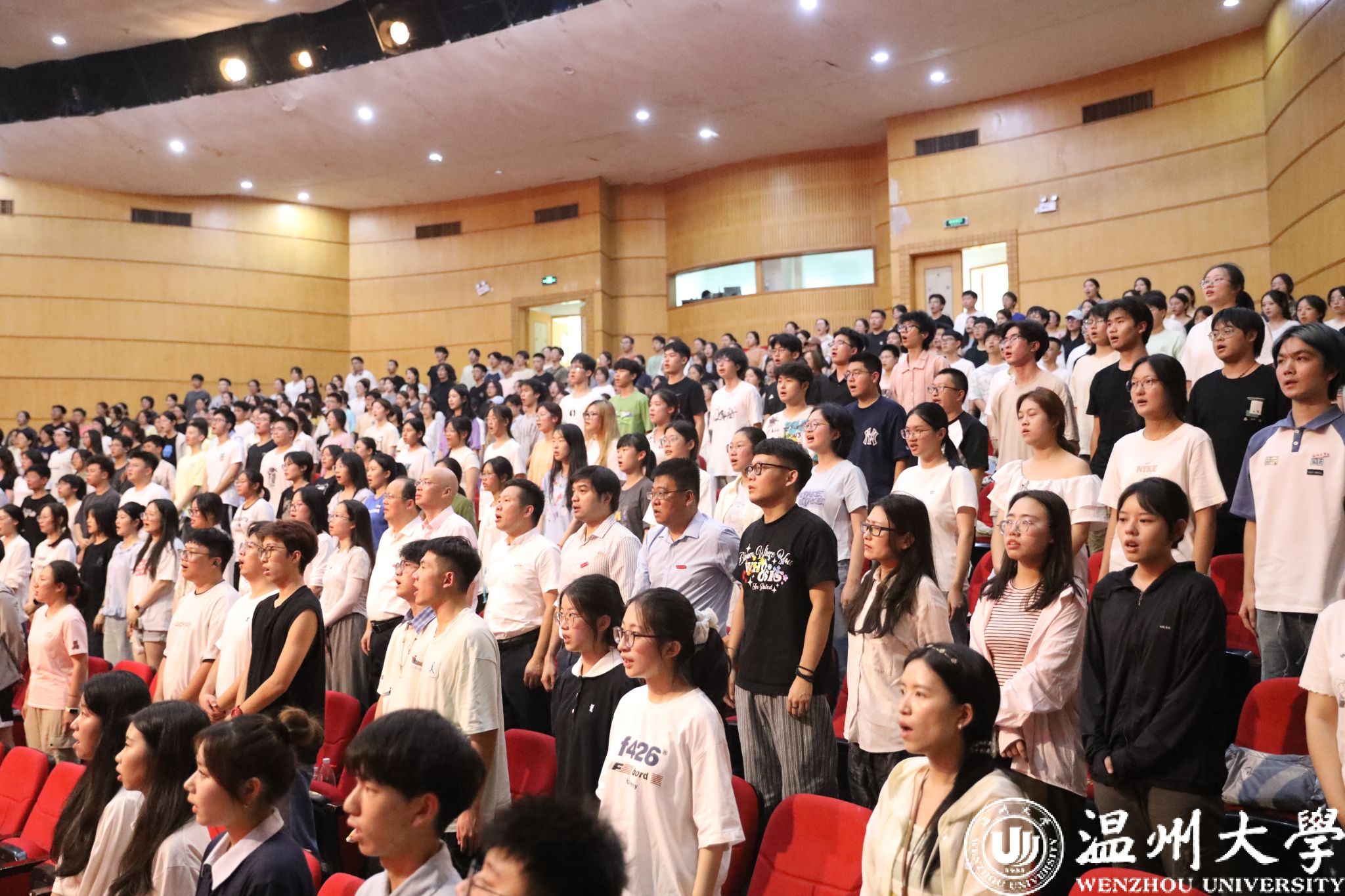 新生见面会在同学们齐唱的校歌声中圆满结束。