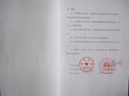为落实学校"双百计划"和服务地方的办学方向,法政麻将胡了试玩 与瓯海区人民法院经过多次商讨,建立双向合作关系。4月30日上午,瓯海区人民法院副院长叶建平一行来到法政麻将胡了试玩 ,与麻将胡了试玩 正式签订合作协议。法政麻将胡了试玩 院长蔡克骄、副院长王柏民及法学教研室部分骨干教师一起会见了客人。 会上双方签署了合作协议,决定建立包括教学、科研等方面的全面合作关系。法政麻将胡了试玩 在瓯海法院建立教学实践基地,聘请瓯海法院具有教强理论水平与实践经验的法官为学生授课、开设讲座,瓯海法院聘请麻将胡了试玩(中国)官方网站 教师组成专家咨询小组,为法院工作提供咨询意见。双方还决定共同建立课题组进行科学研究,还就展开进一步合作进行了交流。