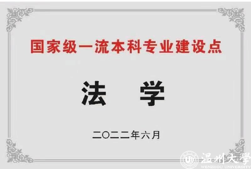 温州大学法学专业设立于2003年,为浙江省一流专业、浙江省“十二五”“十三五”特色专业、温州市重点专业、温州大学优势专业和重点扶持专业。2021年获批国家级一流本科专业建设点。法学学科是浙江省一流学科,已有法学一级学科硕士学位授予点、法律硕士专业学位授予点,是温州大学博士学位授权培育点,在近三年“软科中国最好学科排名”中位列全国80左右。