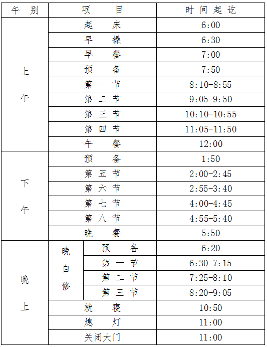 附件:温州大学作息时间表(2015年5月1日起执行)